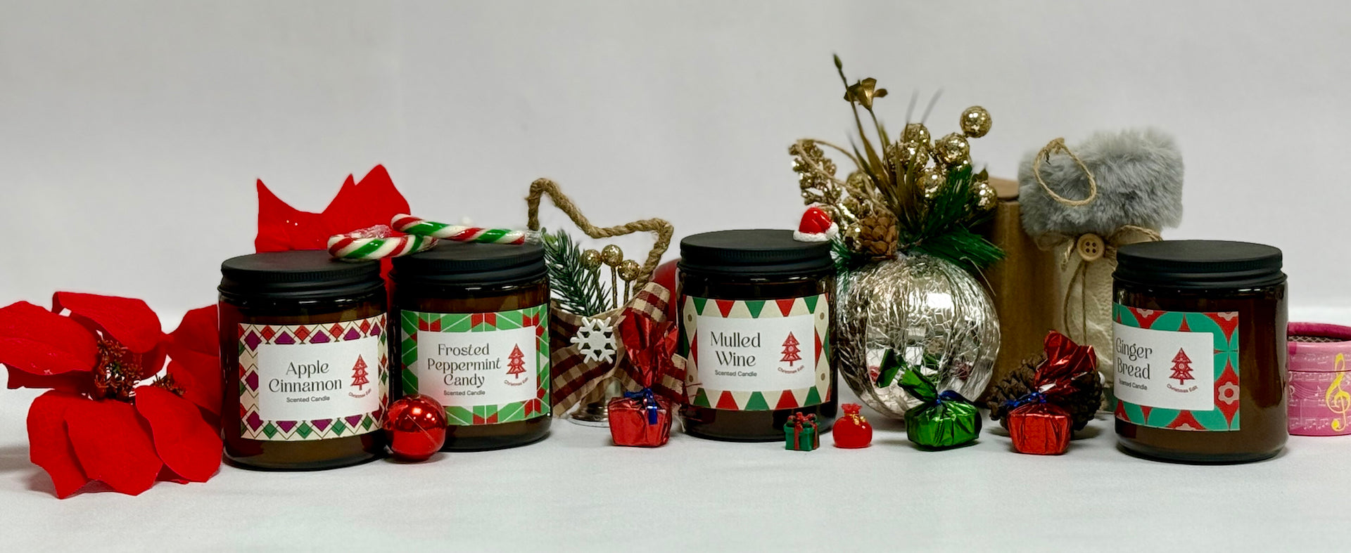 The scent of the holidays, captured in a flickering flame. The Christmas Edit is a celebration of love, laughter, and festivity—wrapped in the warm embrace of Mulled Wine, Gingerbread, Apple Cinnamon, and Frosted Peppermint Candy. Each fragrance fills your space with the magic of the season, bringing the coziness of home, the sparkle of celebration, and the unmistakable joy of Christmas.
